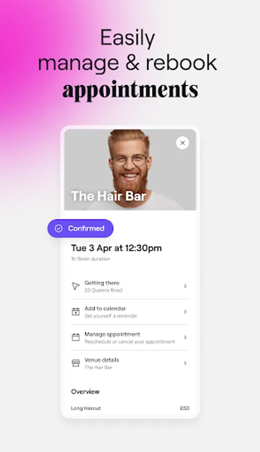 So whether you’re looking for a stylish new haircut, a salon for last-minute nails or to treat yourself to a relaxing massage, you can find the right appointment anywhere, anytime.