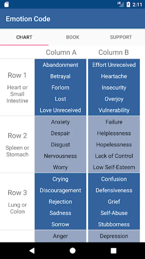 The Emotion Code app is the perfect companion for Emotion Code practitioners, professional and novice alike. With an interactive Chart of Emotions, the app makes practicing the Emotion Code from your Android faster than ever. Identify a chart row and column with muscle testing, then tap to zoom in. Tap an emotion to view that emotion’s description. Clear the trapped emotion, then tap the chart button to zoom back out and start again.