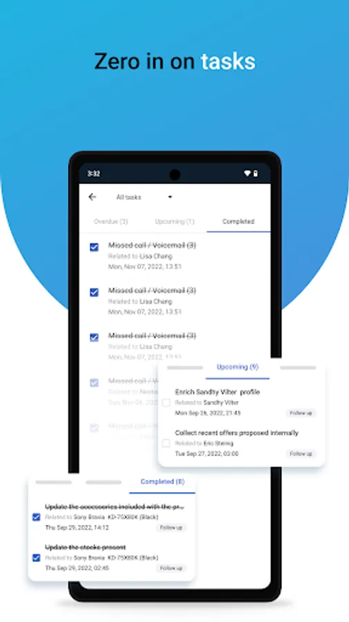 Schedule follow-up activities and update details as you walk into your next meeting.