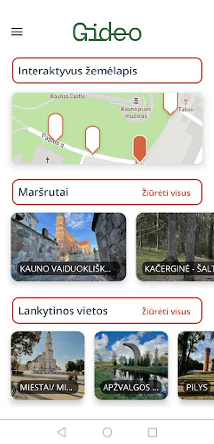 The Gideo mobile guide complements and enriches your individual journey with an interactive form. Attractively presents travel routes, allows you to choose a travel plan according to the desired duration of the trip, according to the current location (clear coordinates are provided), according to the objects you want to visit, etc. Audio recordings are also available in major foreign languages, making it available to foreign travelers. Displays the route of the trip as you approach objects, automatically starts telling stories about those objects, and shows additional photo / video footage (such as what the object looked like 50 years ago).