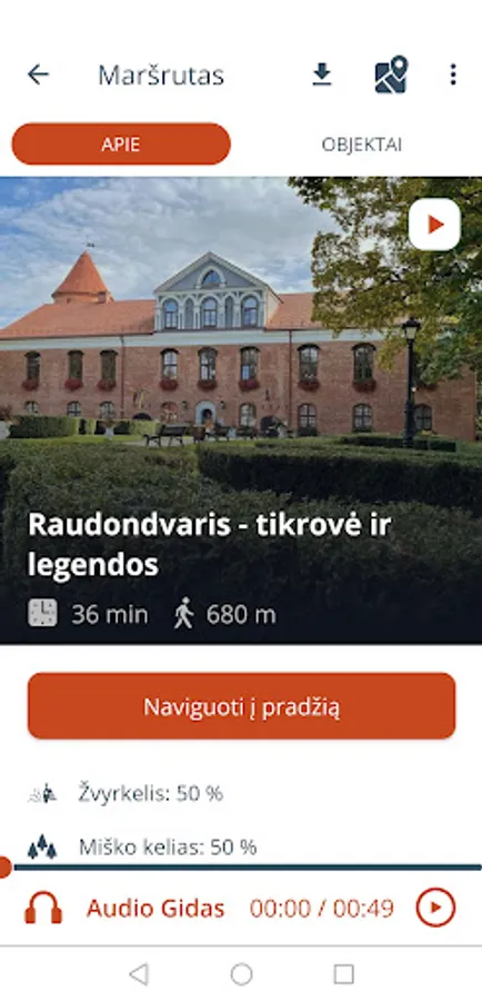 You will see your chosen route, follow the directions that will take you to the appropriate places, and when you reach them, the audio guide will start automatically.