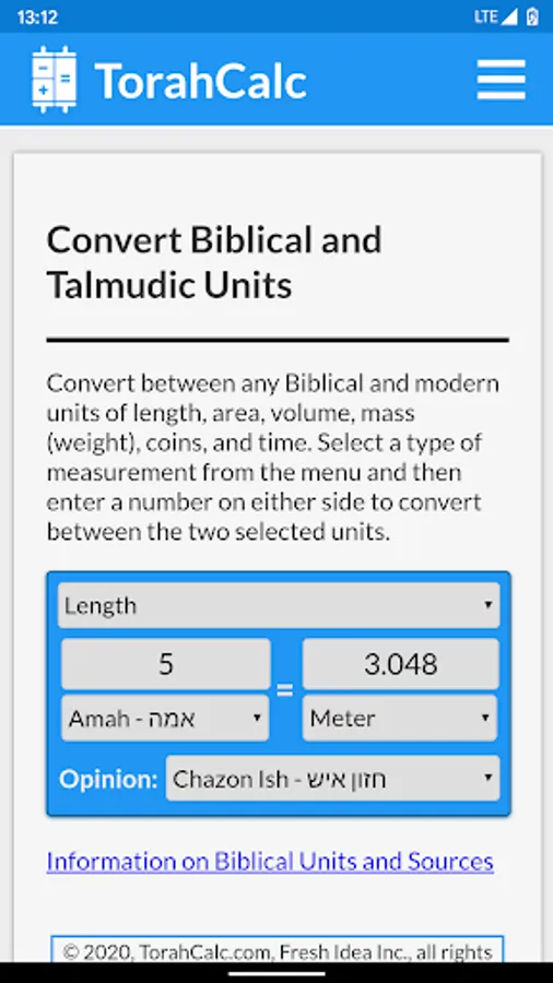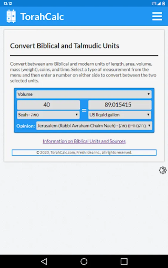 · Biblical and Talmudic Multi-Conversion Charts - Find the equivalent value of a given Biblical, Talmudic, or standard measurement in all of the other units of measurement simultaneously. Convert between all length/distance, area, volume, mass/weight, coins, or time measurements.