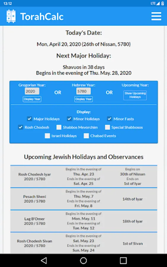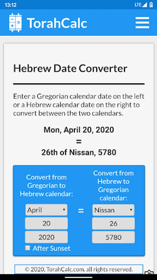 TorahCalc is a collection of tools and calculators for Jewish living and Torah Study.