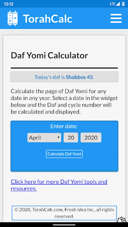 · Daf Yomi Calculator - view info about the current Daf and calculate the Daf Yomi page for any day in any year.
