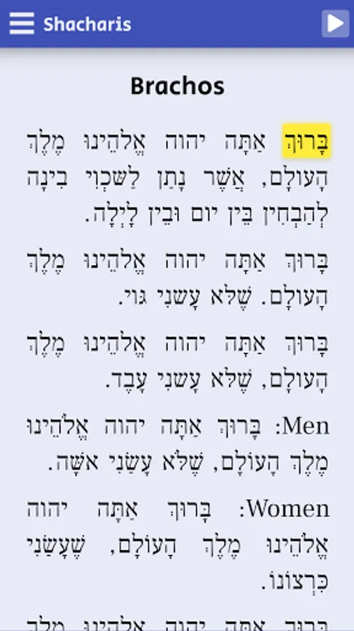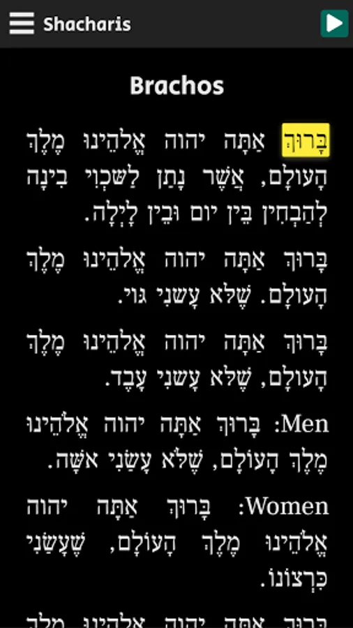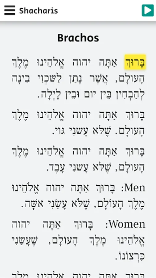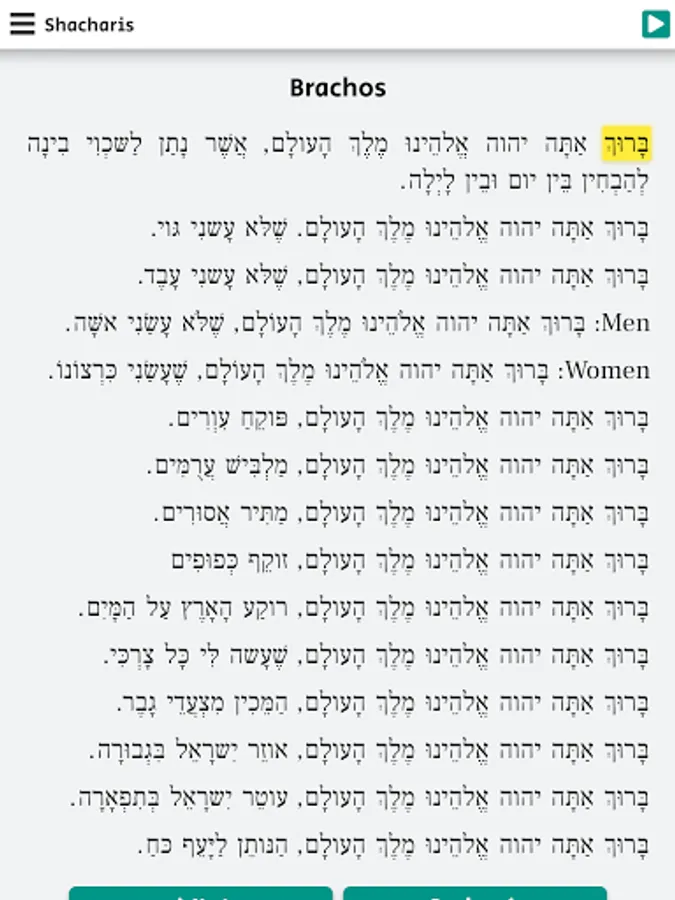 This audio Siddur app teaches you how to daven in Hebrew by hearing the words pronounced. It goes through the standard Ashkenazi Shabbat prayer service, both Shacharis (the morning service) and Mussaf (the additional morning service for Shabbat).
