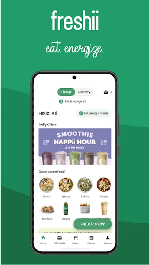 The freshii app is a convenient way to earn Energii Points on your faves and get access to exclusive offers and rewards. You can easily customize your order, and save your favourites items for quick re-ordering.