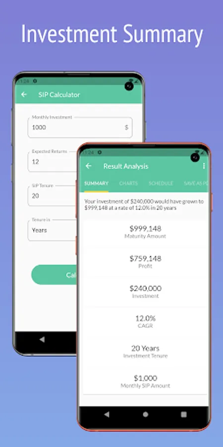 Investment calculator helps you to make right investment decisions by giving you most accurate estimates on your Mutual Fund SIP returns, Stock market profit and loss, Retirement planning, Loan EMI and mortgage amortisation schedule, Lump sum investment final value and CAGR.
