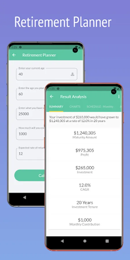 - Monthly / Lump sum contribution for Retirement calculator / planner