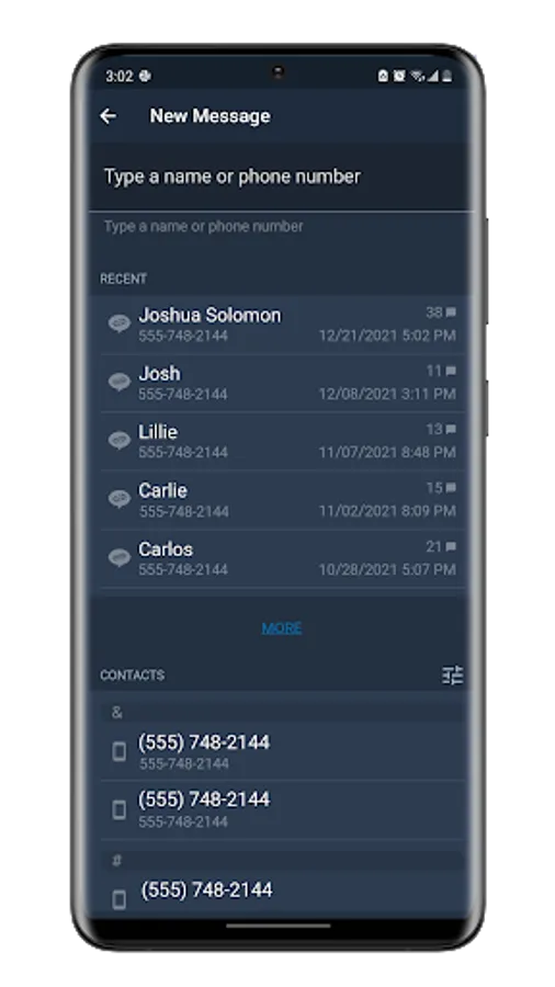Send text messages to contacts from previous conversations in Message Center, from your phone, or by adding their contact information, and see your new contact in Contact Center after the message is sent.
