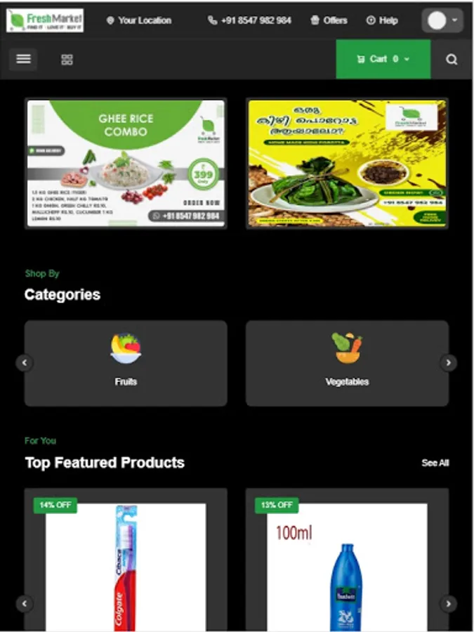 Fresh Market is one of the leading supermarket and food delivery platforms in Kasaragod. Please check our service by ordering. Quick Delivery, Best Offers, and Quality Assured.