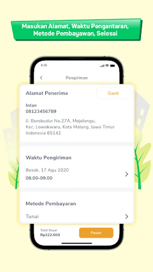 Untuk pemesanan sebelum jam 21.00 pasti sampai besok pagi, tinggal pilih jam pengantaranya! Sementara masih hadir di Area Malang Kota