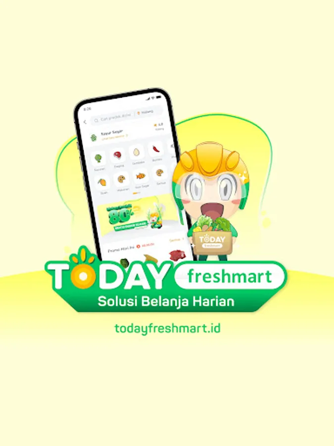 TODAY freshmart adalah Aplikasi Solusi Belanja Harian, yg membantu memenuhi kebutuhan Sayuran, Daging, Ikan Segar, Sembako, Bumbu, Buah, Minuman, Makanan dan masih banyak lainnya.