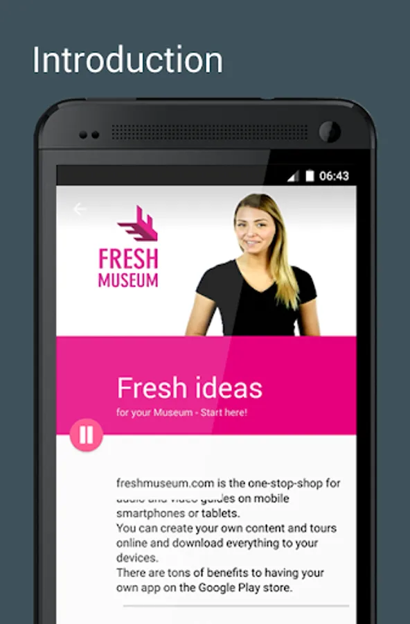 Fresh Museum is your one-stop-shop for audio and video guides on mobile smartphones or tablets. You can create your own content and Tours online and download everything to your devices. There are tons of benefits to having your own app on the Google Play store.
