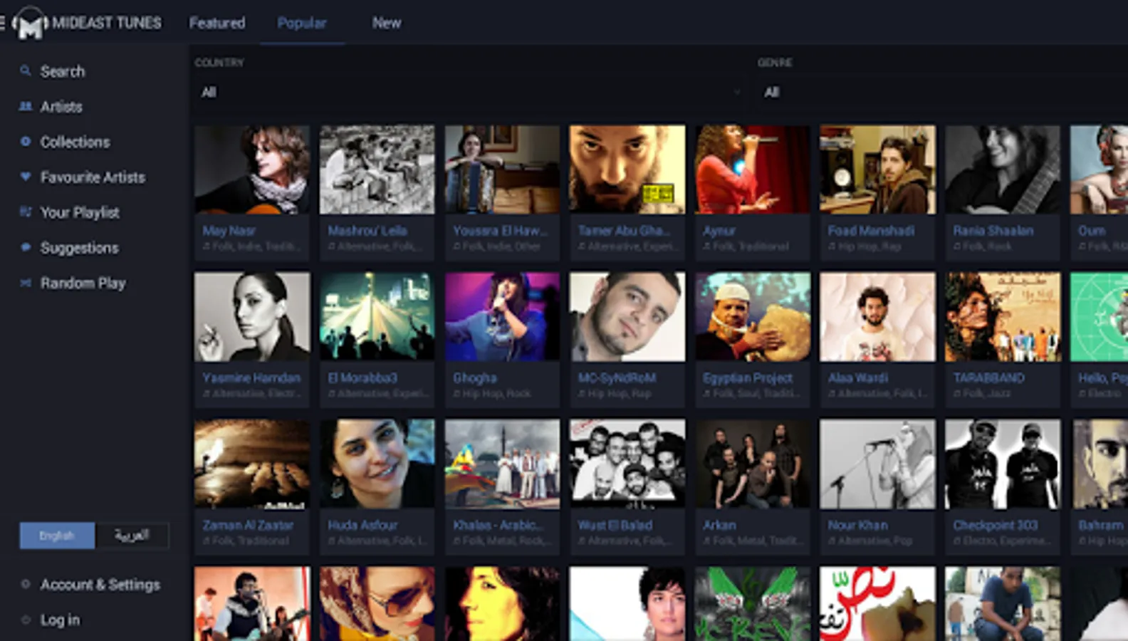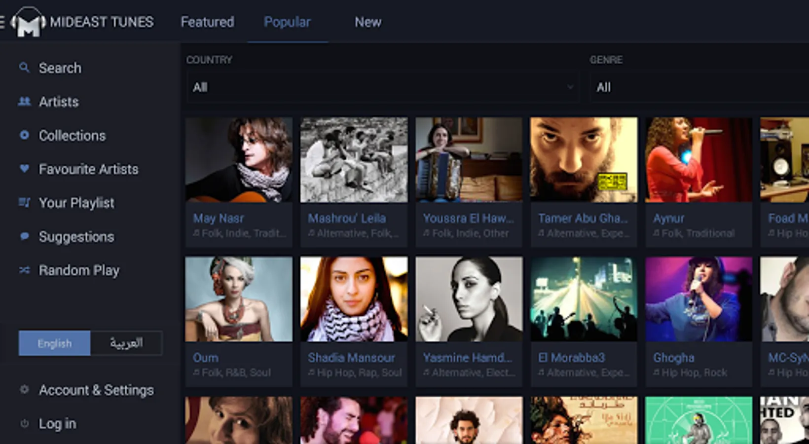 The Mideast Tunes app has been completely redesigned for your convenience - in this latest update, we are pleased to announce new features such as the ability to favorite artists, create and shuffle playlists, explore similar artists to the bands you're viewing, new player, a completely new way to navigate throughout the app and much more! The app is also now available in Arabic as well. Please enjoy!