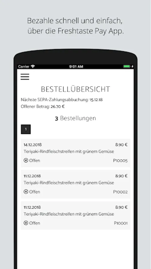 With the Freshtaste you can easily bring great food to your workplace. You can pay very easily with the Freshtaste Pay app. We deliver your favorite dishes to your workplace, you choose the dish you want and conveniently scan the QR code of your meal with the Freshtaste app. You enter your payment method and billing address once in order to keep the payment process as fast as possible.