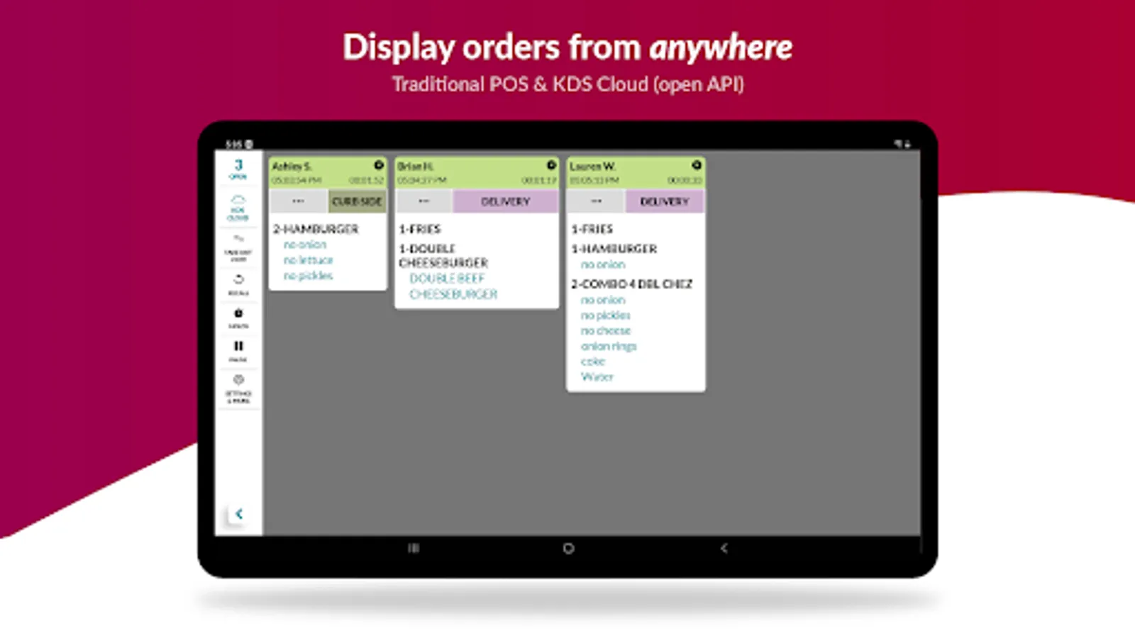 Fresh KDS wireless display enables restaurant operators to optimize their kitchen production, facilitate in-store and e-commerce hand-offs, and introduce communication to all areas of the restaurant.
