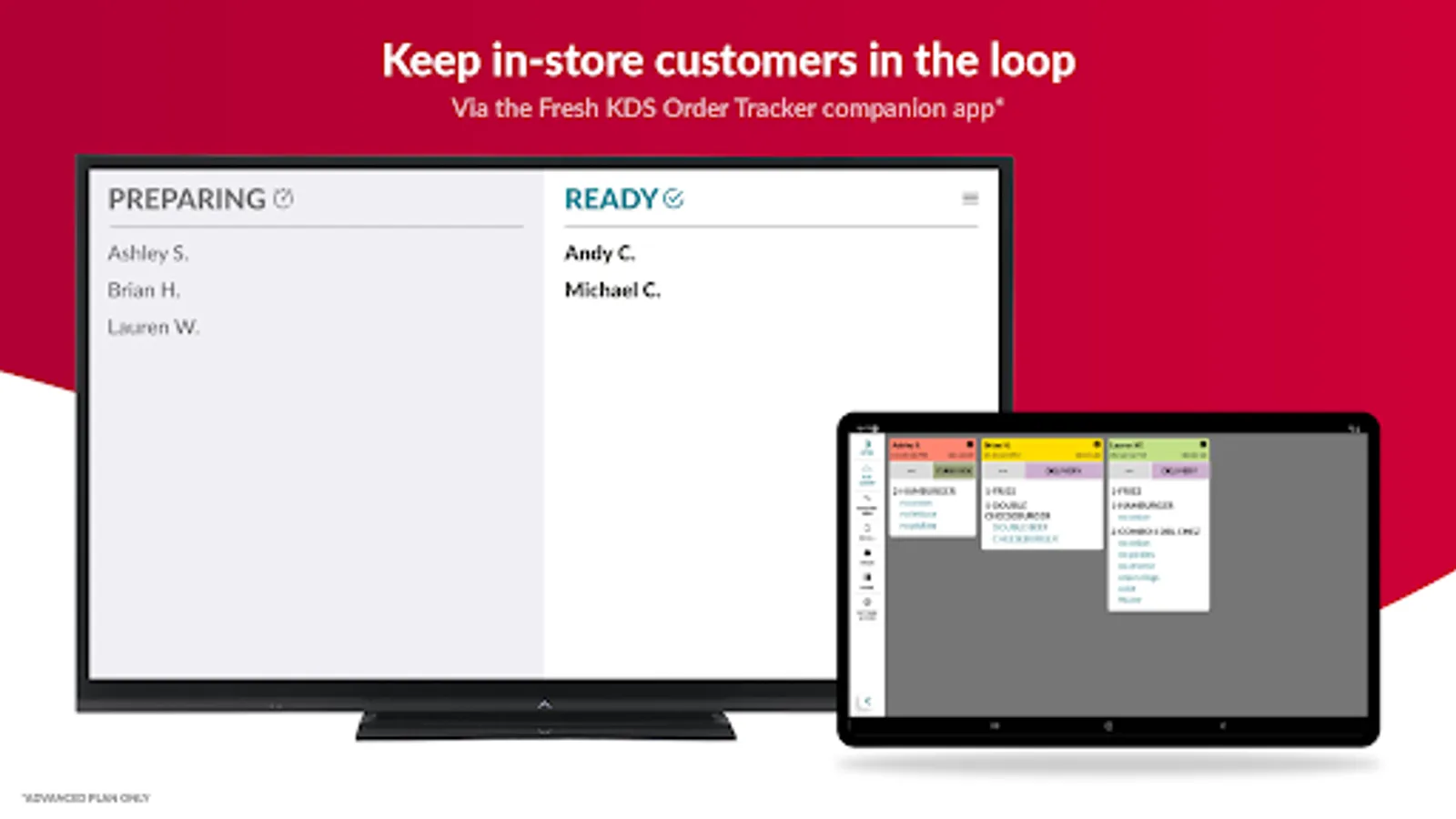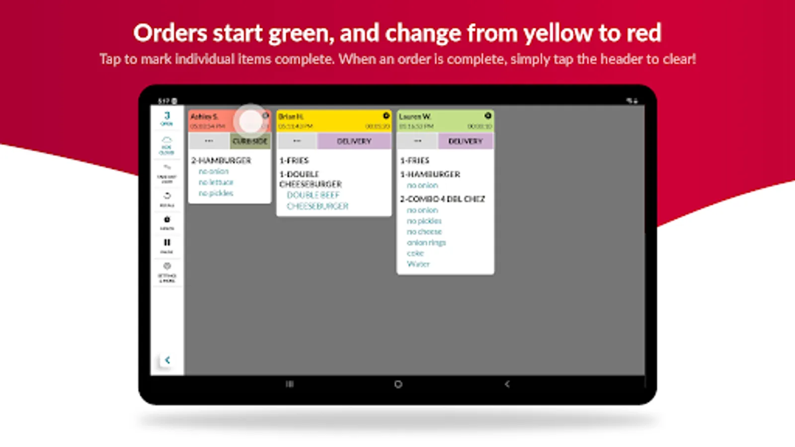 With Fresh KDS, all of your menu items, modifiers, and order types are shown on one screen so your cook and server can get orders out accurately. No more errors caused by handwritten paper tickets, frustrated staff or guests, missing takeout orders, and lost money.
