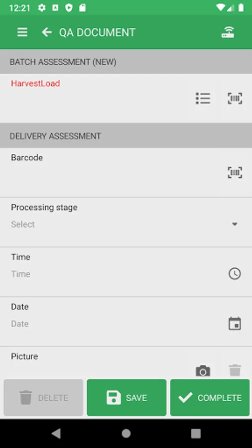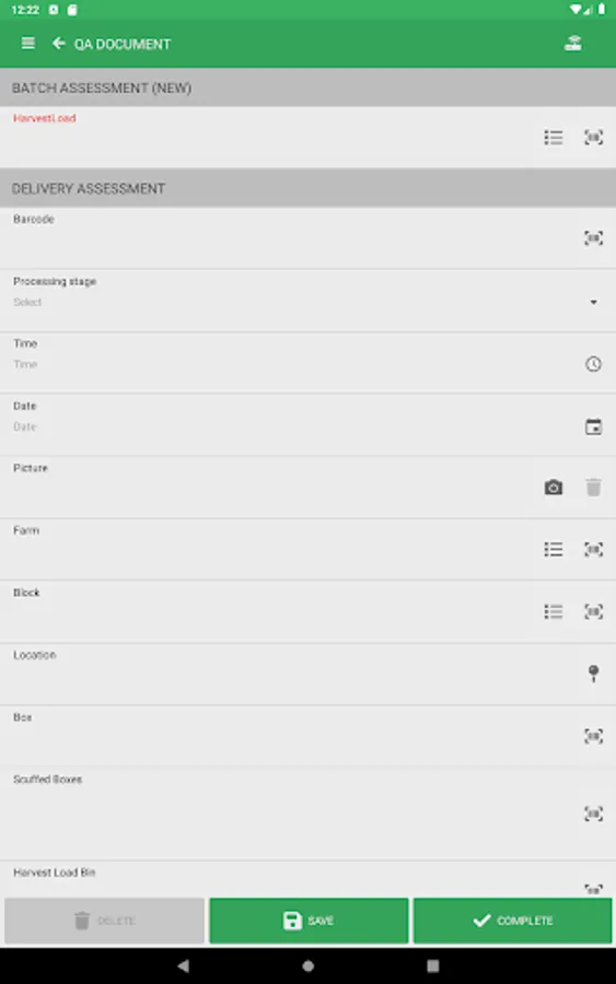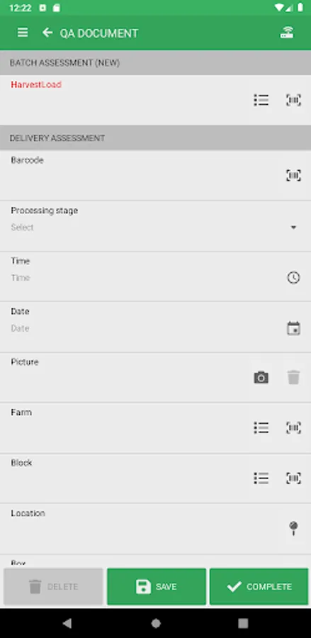 QA documents can be created from user definable templates that are assignable to various control points including: Grower, Farm, Block, Planting, Packing Facility, Harvest Delivery, Bin, Batch, Carton, Pallet and Consignment. Template field data types include: numeric, text, barcode, date, time, selection list and photo.