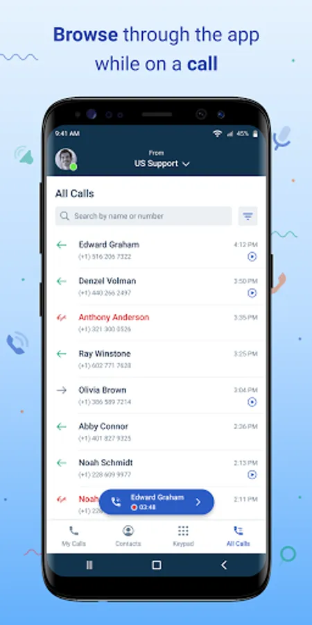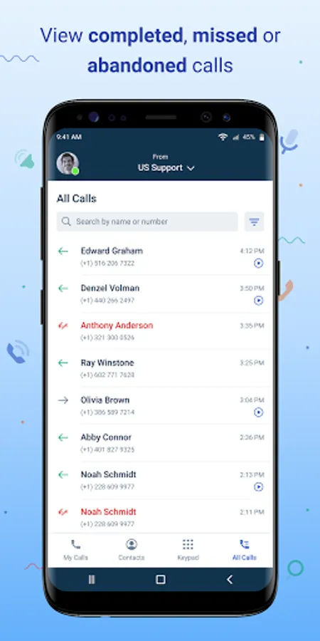 Recent calls: Directly engage with your most recent callers from the list of recent calls