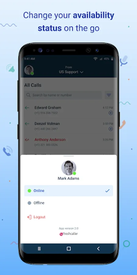 With the Freshcaller mobile app, reach out or be available to your customers even while on the go. Your phone system is in your pocket! The smartly designed features of this app help you address every call that comes your way, and solve your customers' problems then and there.