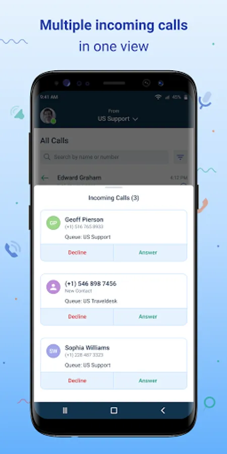Multiple incoming calls View all your incoming calls in queue on one single screen