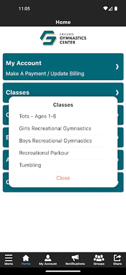 The FGC app allows you to manage your account with ease, register for classes, parties, and special events. You'll also receive important notifications about class changes, closings, registration openings, special announcements, and upcoming events.
