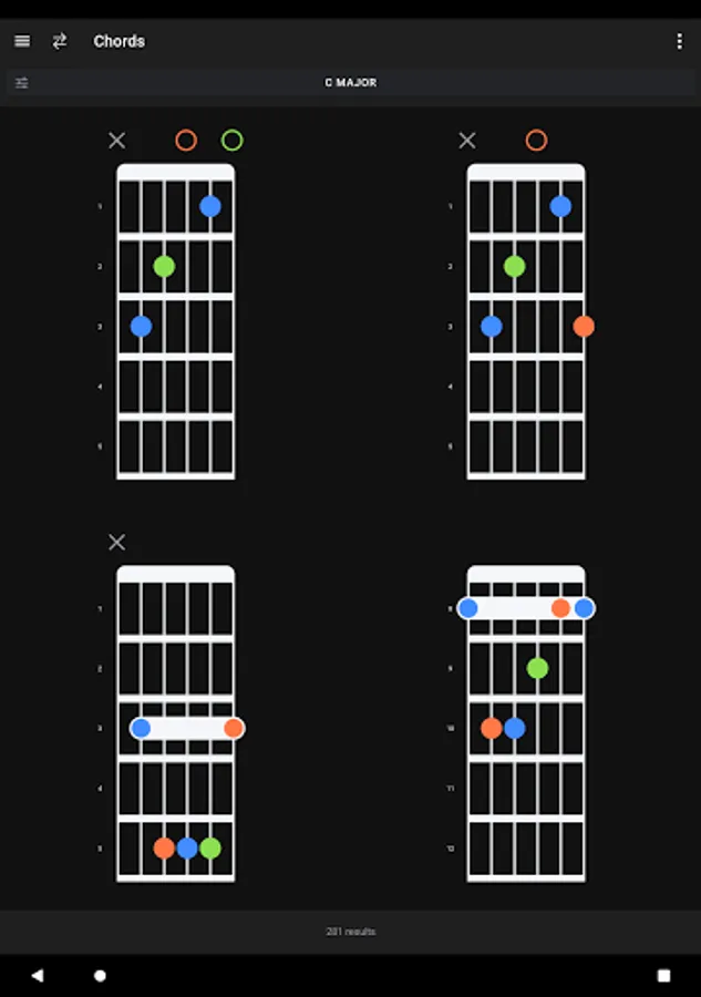 This is not just a chord book. Fretcetera computes every way to play chords in any tuning, and returns the top results based on their playability. Fine-tune results by configuring your instrument exactly as you play it. Enter personal preferences and constraints. Select from common tunings or create your own!