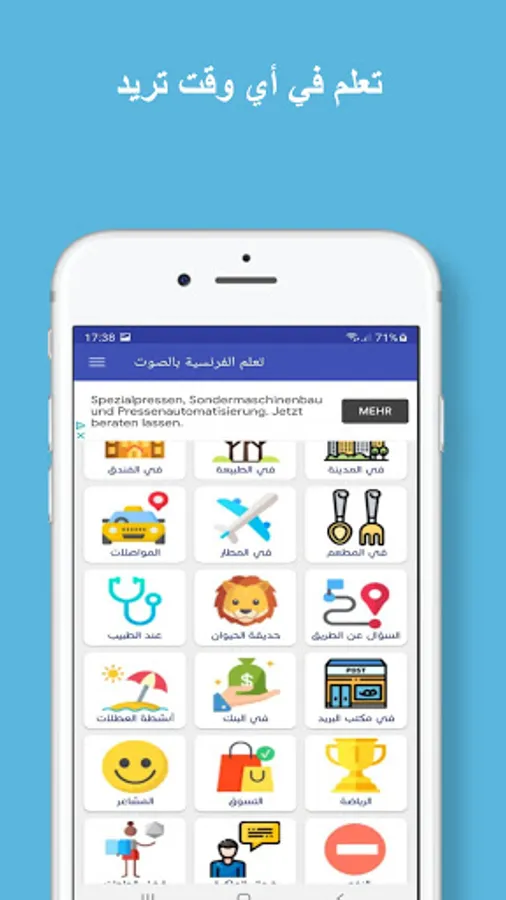 The application contains the most important words and sentences in the French language translated into Arabic with the way they are pronounced by sound and image