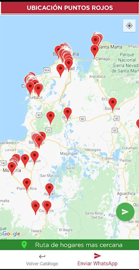 You can search the map for the Red Point closest to your location to send the order automatically from the WhatsApp application