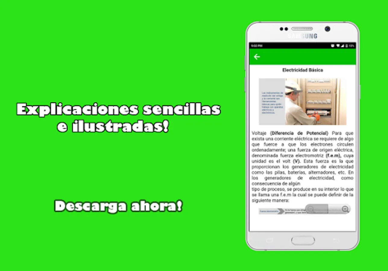 Course b & aacute; SICO electricity Free est & aacute already; Available for all Android devices. Learn the principles b & aacute; musicians electricity . Assembling a circuit, power and engines with the idea of learning that is b & aacute; basically electricity, how it is transmitted and distributed, which magnitudes constitute it, its character & iacute; sticas, knowledge of circuits the & eacute; ctricos, types connections and m & aacute; s . Your new application & oacute; n course b & aacute; SICO electricity has the best simple and illustrated electricity explanations B & aacute; music for a better understanding on the matter . & nbsp; If you have questions or suggestions about your application & oacute; n course b & aacute; SICO electricity please write to freyesculquiapps@gmail.com and delighted solve it. & nbsp; Download and and always enjoy your new App b & aacute course MUSICIAN electricity free