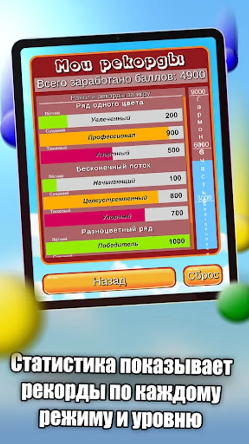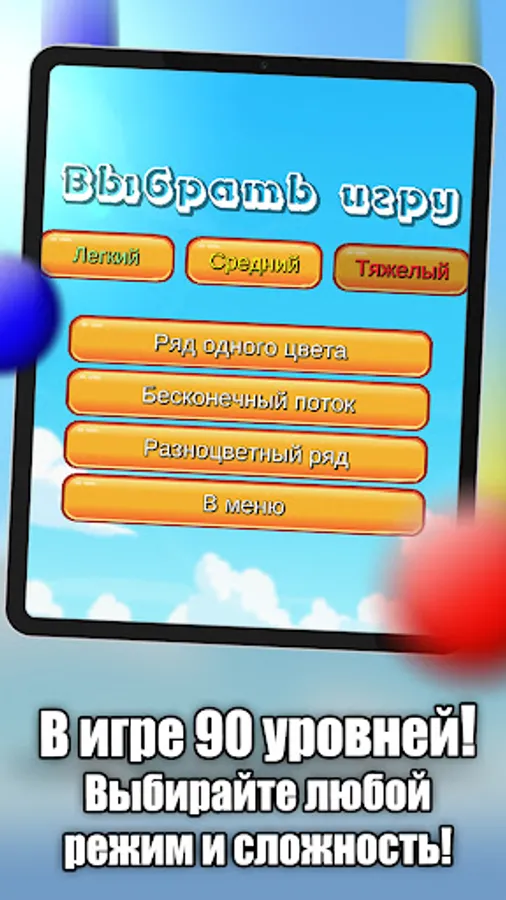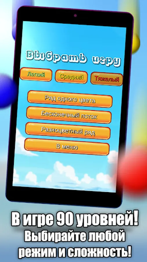 - Choice of 3 modes and different difficulty of the game, 90 levels of passing.