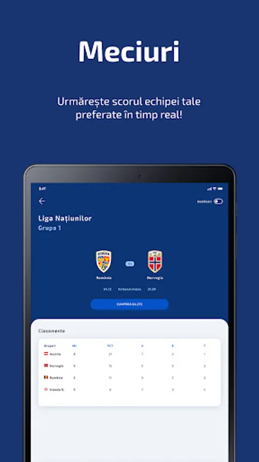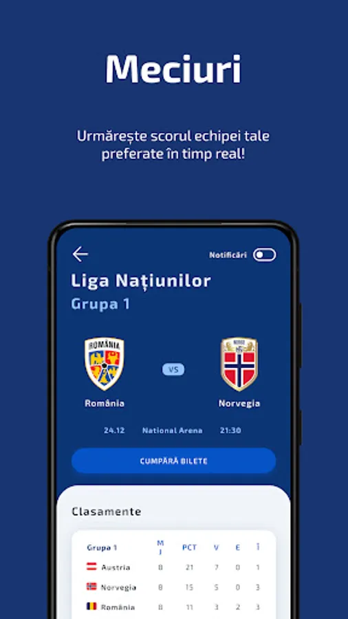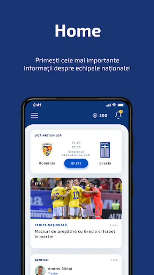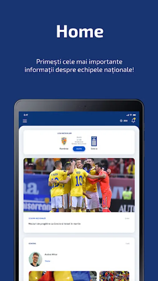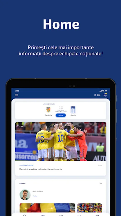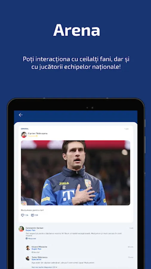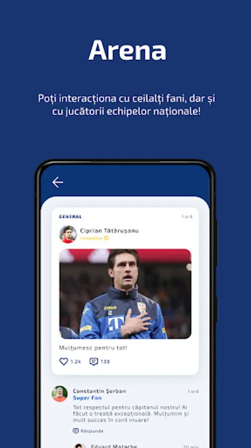 The Fan Arena by FRF application completes your tricolor support kit! Be the first to find out the latest news from the national team's cantonment, when the tickets for the matches are put on sale and share the feelings with other fans of the national team, on the platform dedicated to Romania's fans. You have the experiences you love as a supporter, just a click away!