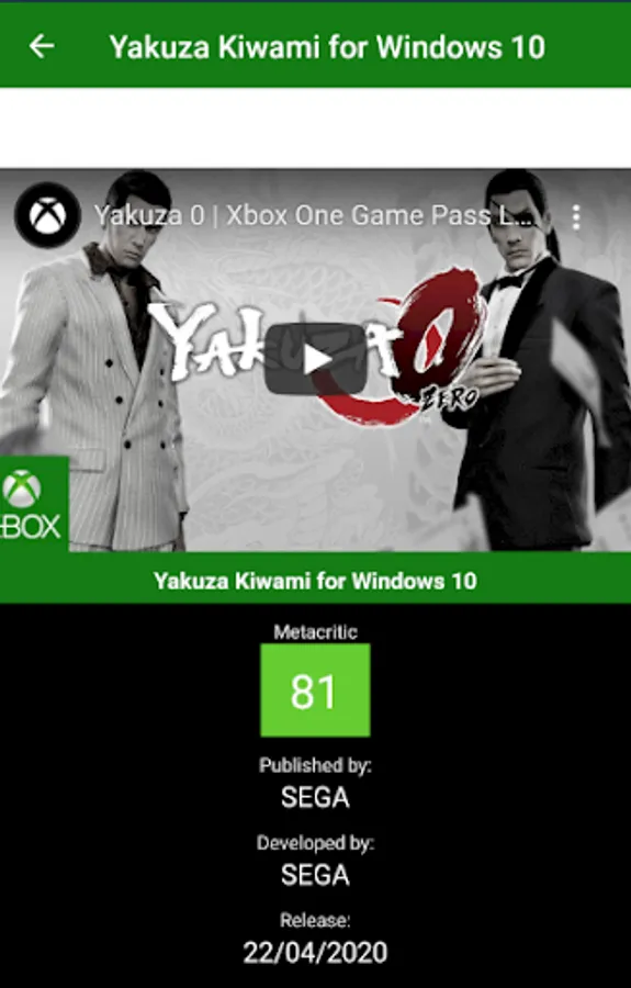 Information about each game that is part of the Game Pass such as launch trailer, Metacritic note, release date, genre, PEGI, etc ...