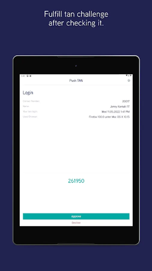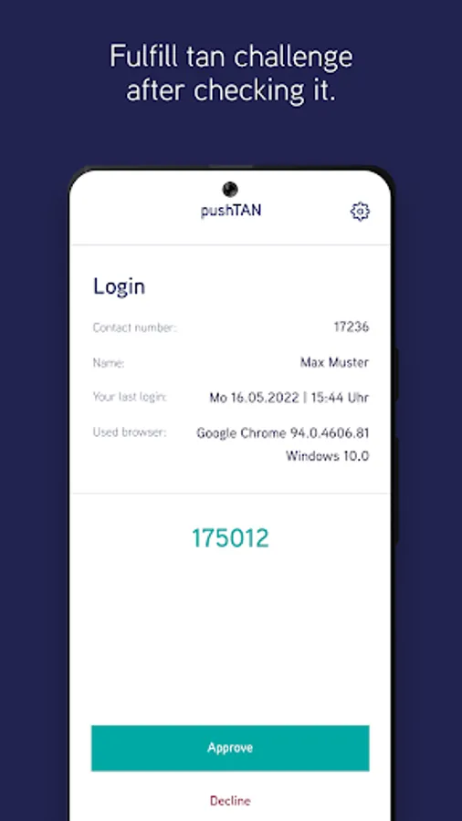 - Can be used for all processes requiring a TAN: Login, Approve Payments, Administration and much more.
