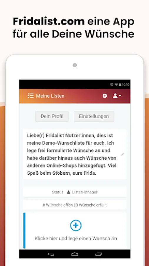 You can then add as many wishes, products or services as you like. Frida offers numerous options for this. - Step 3: Share your Wishlist