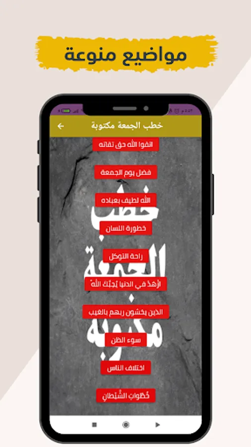 The application of written Friday sermons 2023: influential Friday sermons that contain the best and most beautiful Friday sermons without the net. The application of Friday sermons written 2023 contains: Friday sermons affecting sermons entitled What after Ramadan. Enjoining good and forbidding evil. Repentance. The virtues of seeking refuge in God. Fear God as He should be feared. The virtue of Friday. God is kind to His servants. The seriousness of the tongue. The comfort of trust. patience .