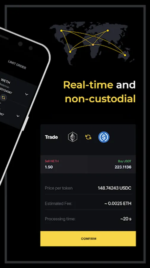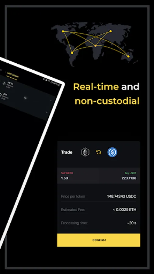 UDEX is a decentralized, real-time, and non-custodial ERC-20 token exchange built on 0x protocol technology. Swap Ether and Ethereum-based tokens (ERC-20) directly with other users without trading fees. UDEX is open source. It's fully decentralized. Designed to detail and build by gifted engineers. Private Keys stored on device. Easy to backup and restore.