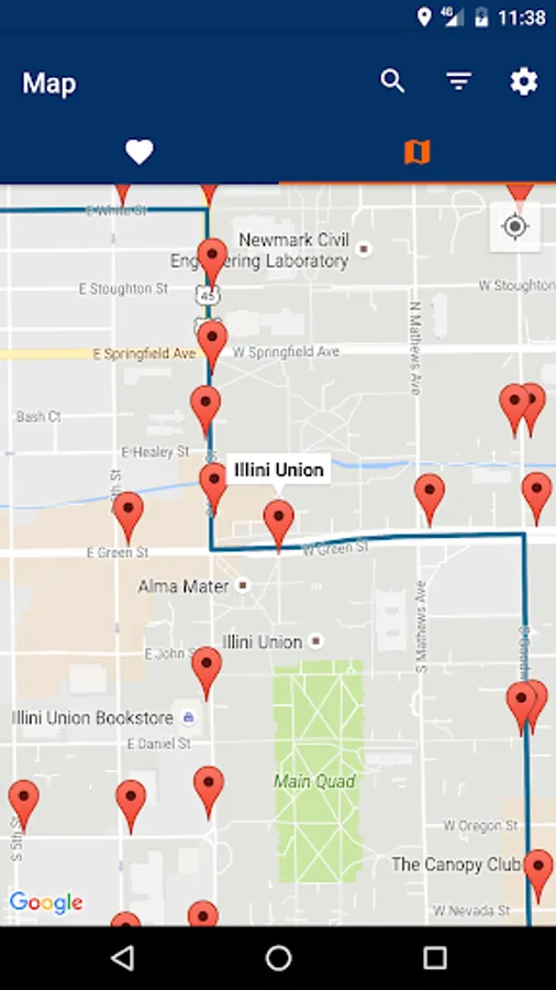 - Bus Route Overlays: Click on the map filters to see where different bus routes take you through campus
