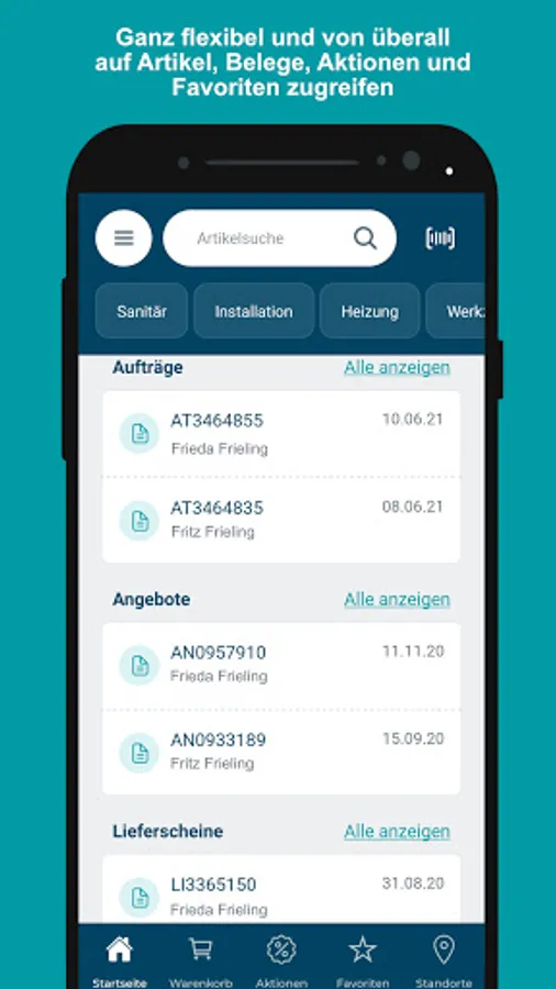 The Frieling app gives you the opportunity to use the most important functions of our online shop anywhere and anytime. Call up your orders and offers while on the move, create orders or start navigating to the next location. The Frieling app offers you more flexibility. You can look forward to the following functions, among others: