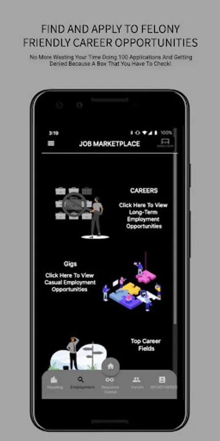 Browse our felony friendly job marketplace with over 10,000 employment opportunities, search housing options near you, post in the forum to connect with your peers and explore the resource center for all things reentry!