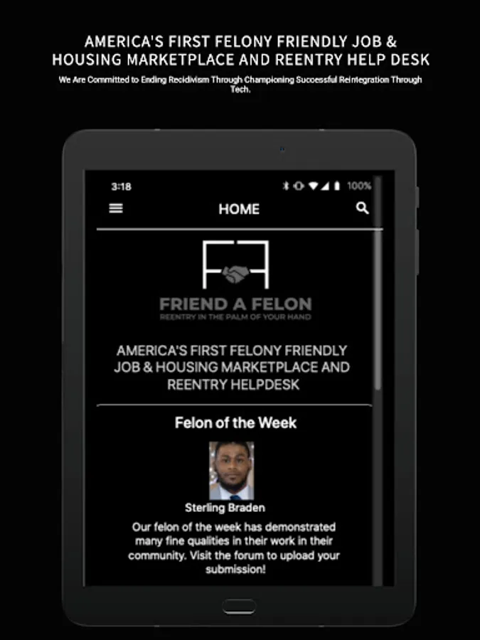 Are you or someone that you know a convicted felon? At Friend A Felon, we are committed to ending recidivism by championing successful reintegration through tech. The Friend A Felon App, America’s first felony friendly job & housing marketplace and reentry helpdesk, is the first of its kind providing transparency and accessibility to resources and opportunities most don’t know is available to them!
