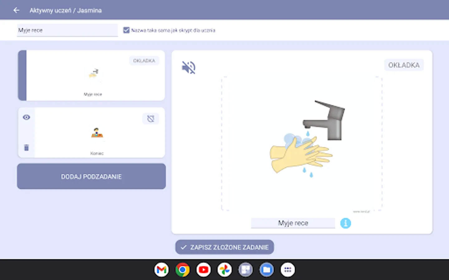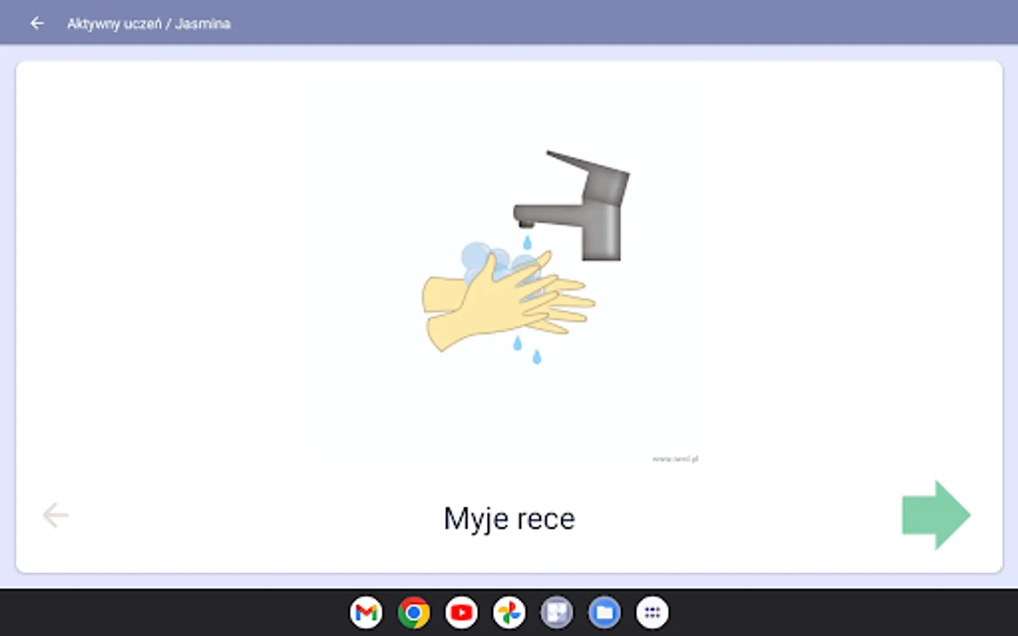 The application can be downloaded and used at home, school or other educational institution where the child stays. It can be used by children, teenagers and adults. The application was developed for people with autism, but it can also be used by people with other disorders.