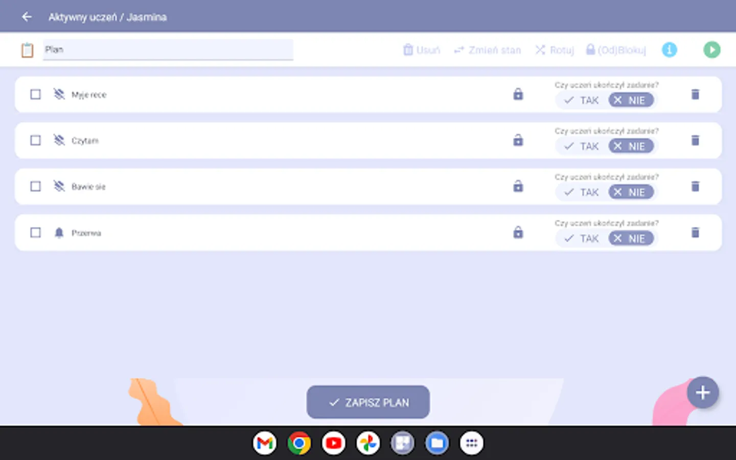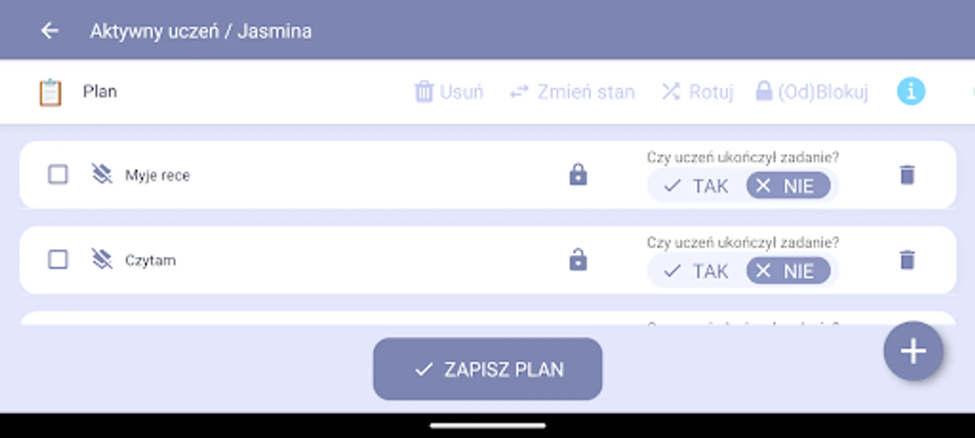 The Friendly Plan application allows you to create activity plans of varying degrees of difficulty, tailored to the needs of people on the autism spectrum and intellectual disabilities. It also allows you to add recorded scripts to individual tasks.