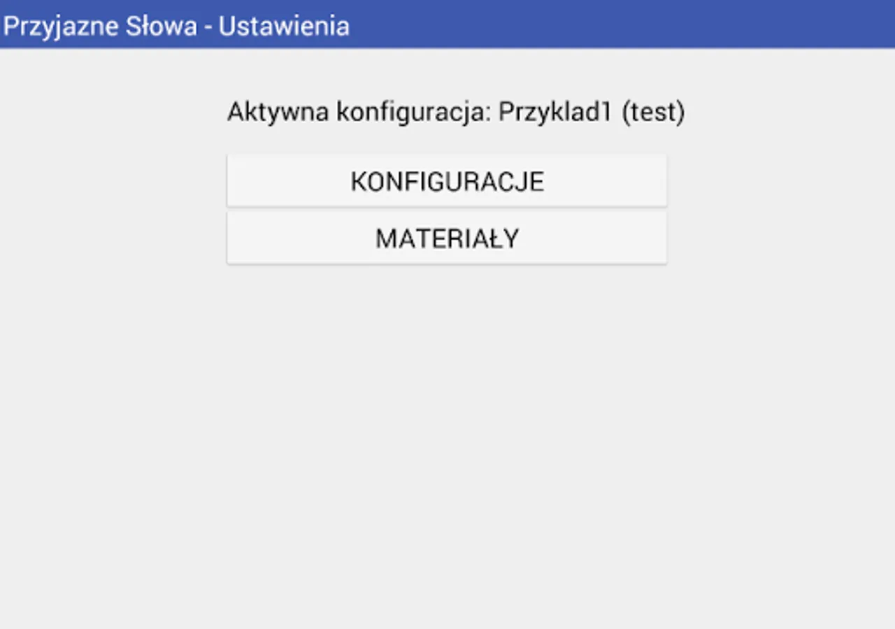 In addition to determining which materials are to be displayed, the configuration allows you to define parameters such as the time to answer (separately for learning mode and test mode), the number of possible answers (the number of pictures on the screen) or the number of repetitions of a given material in the game (separately for the mode learning and test mode). It is also possible to choose the form of the command - determining whether the command should be automatically read by the simulator after showing it on the screen and whether captions should be visible under the pictures. An important element of the settings is determining whether voice praises are to be played; and if this option is enabled, which of the word praise can be played.