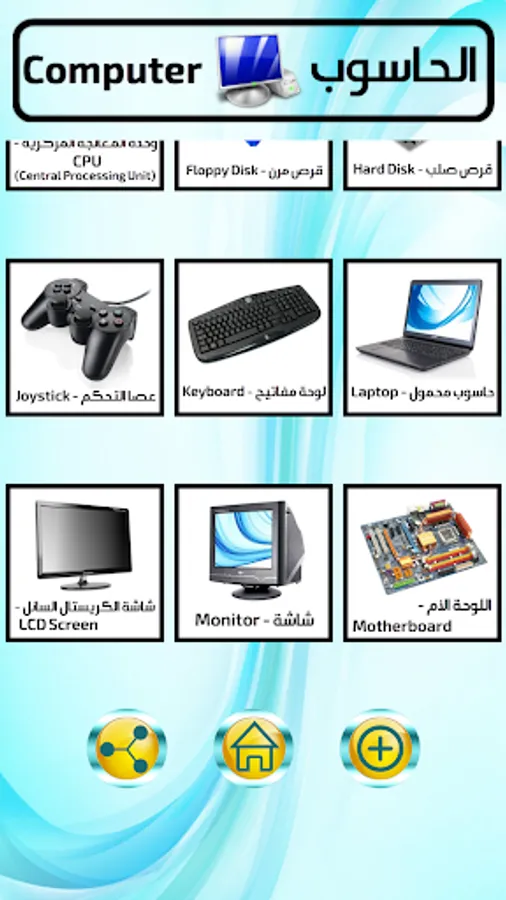 - Character - colors - animals - birds - the supermarket - the workshop - the human body - the hospital - Islam - school - fruit - vegetables - Computer - Transportation - Sports - professions ..