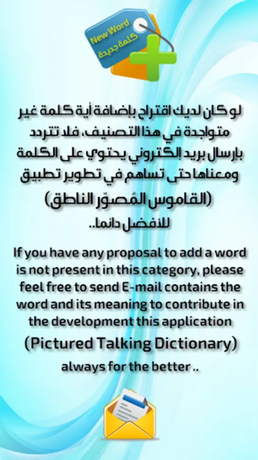 Easy and enjoyable manner Now you can learn more than 500 words of the important words in Arabic and English through picture and sound of these words and classified according to its kind in more than 16 different classification includes many ways in our daily lives ..