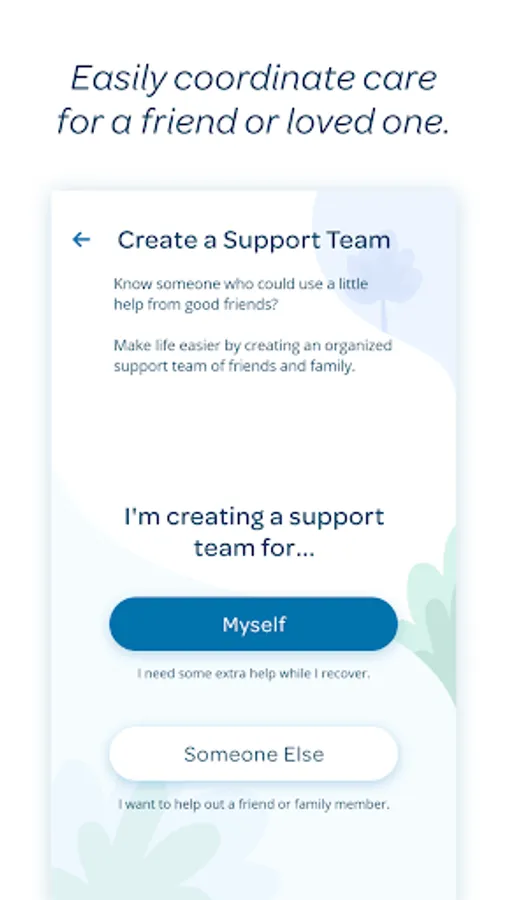 Friends will often ask how they can help. Our app lets you turn those offers into actions, and enables friends to provide the right help at the right time. We also make it easy to keep everyone up-to-date with the latest news—no more repeating the same stories over and over. Lastly, your team is kept completely private and no one can find or join it without an invitation. We understand the realities of being a caregiver and we are dedicated to providing a service that will offer some well deserved relief.