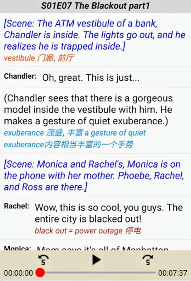 - 每集会被分为3段,均配有声音文件辅助学习