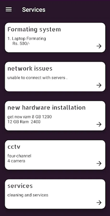 : AMC (Annual maintenance) and MMC (Monthly maintenance) Part of corporate services (Products we sell: Refurbished computers and laptops (Gently used by IT professionals)