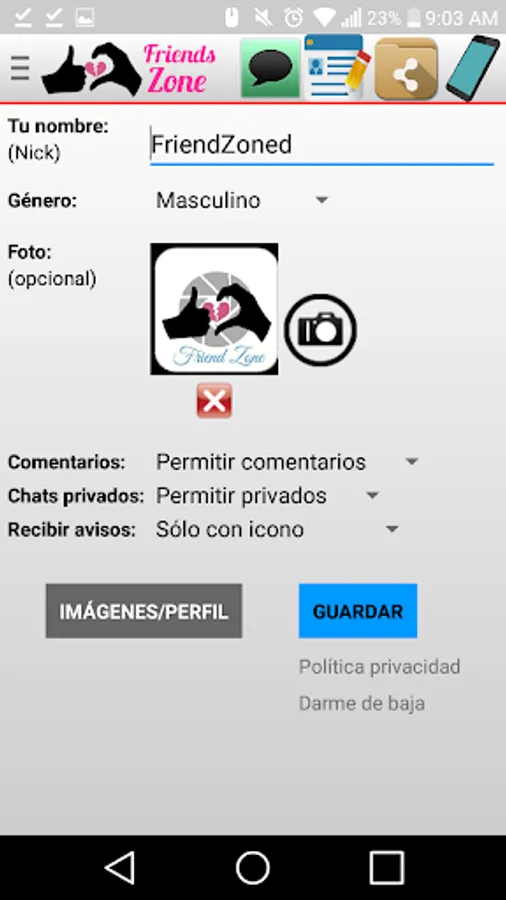 Enter using your real name or a fictitious name (nickname). Share photos or videos on your profile and receive comments.